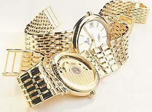 Während Sie sich bewegen produziert diese außergewöhnliche 14K Gold Auto-Quarz Armbanduhr Energie. Wenn diese völlig aufgeladen ist, speichert sie genug Energie um ununterbrochen mehr als hundert |